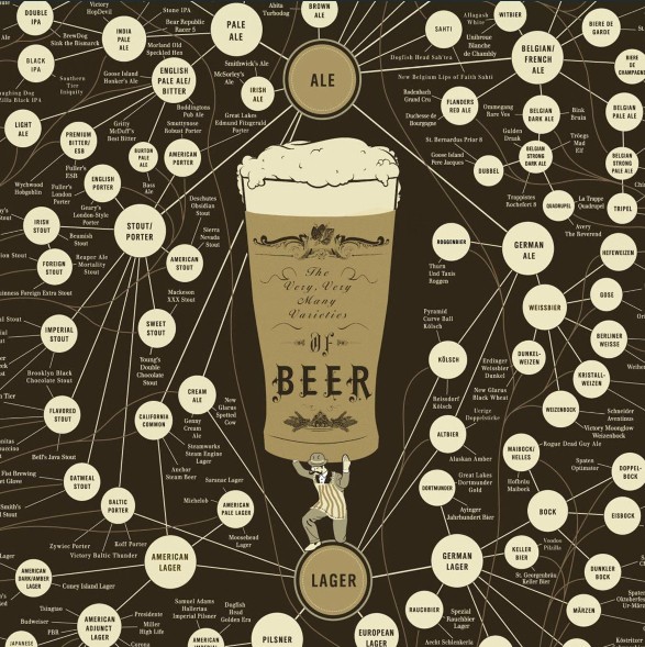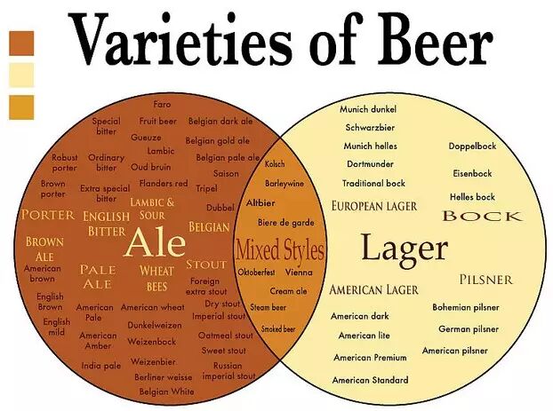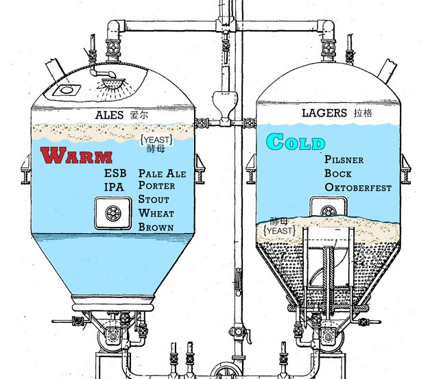 首先最主要你要明白,啤酒最基础的分类是按照酿造工艺区分的,分为上发酵(Ale爱尔)和下发酵(Lager拉格),两种技术的差别只在于发酵的温度和酵母工作的位置,上发酵啤酒酵母在发酵罐顶端工作,温度在10-20度,下发酵啤酒酵母在发酵罐底部工作,温度在10度以下,你大可以用一种形象(但并不准确)的方式理解这两种啤酒的区别-喝上发酵啤酒的时候先喝到酵母和辅料的味道,之后你要在这些味道里面找麦芽的香味,而下发酵啤酒你先喝到的是麦芽的香味,然后才有其它辅料的味道。